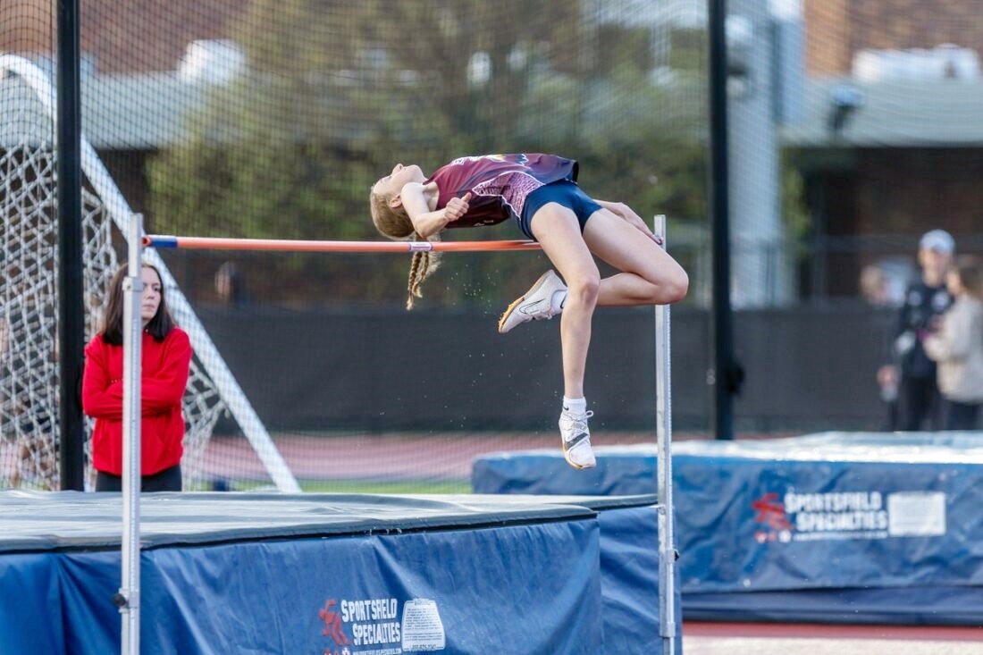 Girls high jump: Isa Kioko (C/S/P), Jada Cole (CL/W/B), Addie Miller (EA), Kaleigha Kosek (I), Isabella Milks (Sa), Megan Cassidy (EA). H-5-3