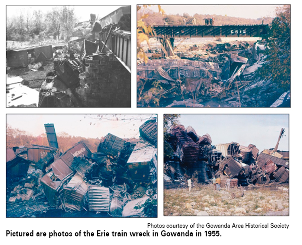 Seventy years ago, on Oct. 12, 1955, a spectacular train wreck in Gowanda destroyed half the railroad bridge over Cattaraugus Creek, leaving a 60-foot-high pile of shattered cars littering the creek bed.