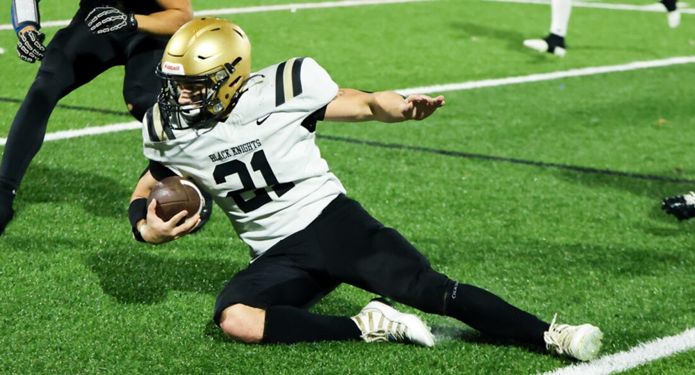OBSERVER Photo by Jon Neubauer | Sideline Images of WNY Silver Creek/Forestville running back Max Tenamore slides for a first down against Newfane in the Section VI Class D semifinals Friday night.