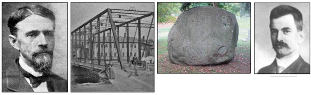 Pictured above, from left to right are; C.C. Torrance, the old Gowanda Iron Bridge, the Torrance Boulder, and an unidentified man believed to be Fred E. Hawkins.