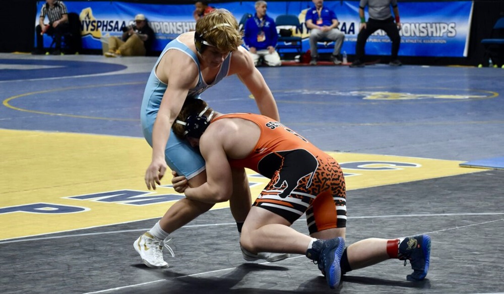 While Warrior dropped the sectional final, he started states strong with a second period pin over No. 21 Diego Villacis of North Shore-VIII at 2:26. He moves on to wrestle No. 5 Cyler Baer of Gouverneur in the prequarterfinals.